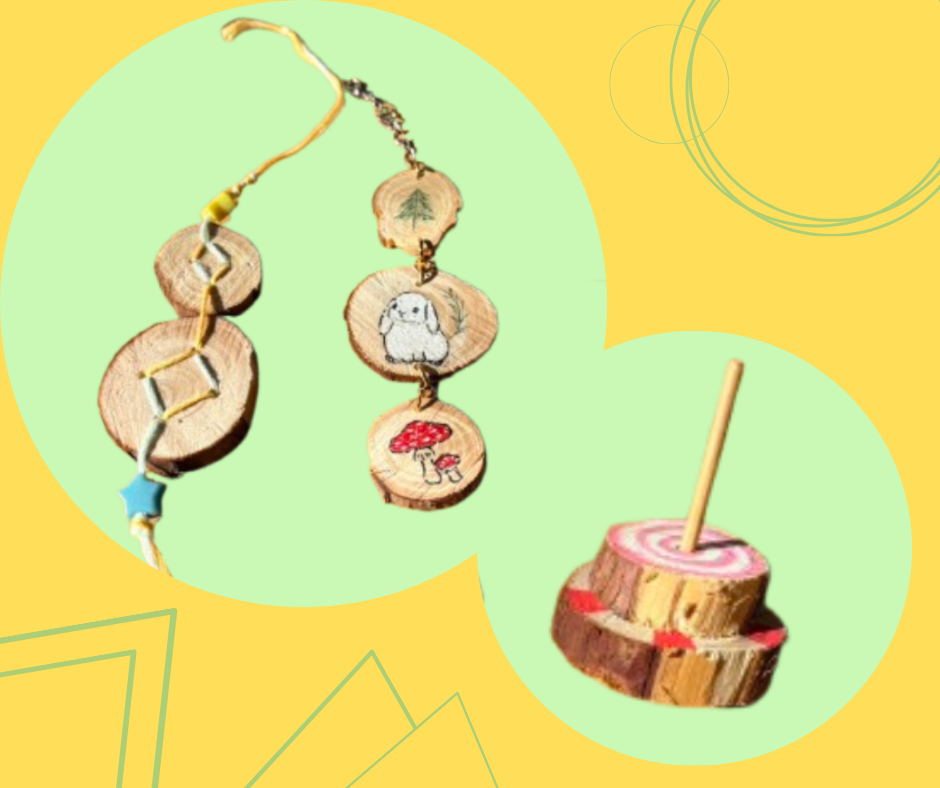 木をつかった「コマ」や「キーホルダー」づくりを体験するイベントを開催します。※どちらか選んで作成