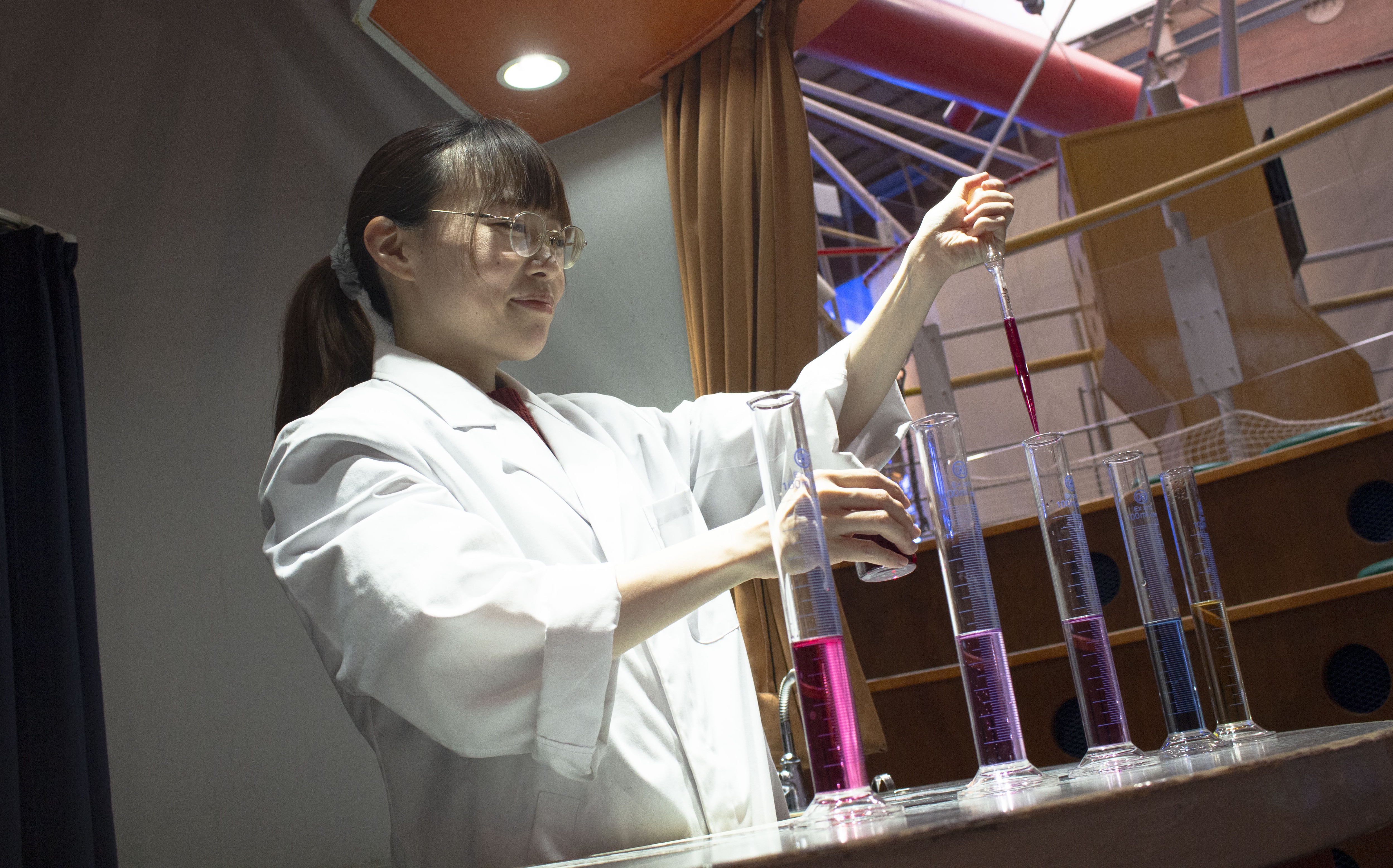 マジックのように色が変化する実験を行います。