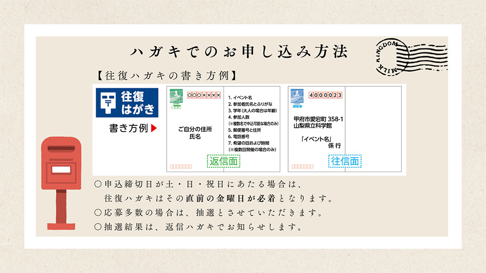 APPLY BY POSTCARDハガキでのお申し込み方法